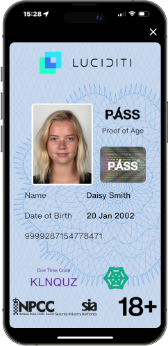 Luciditi Age Proof is an official Digital Proof of Age credential. PASS has been appointed by the Home Office and is recognised by the Police, Security industry and others such as retail and travel companies.