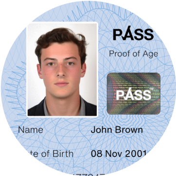 Every holder of an Age Proof card has previously had their identity checked using a valid passport. We have also confirmed that they are a UK resident and meet the age requirement of the card being presented (16+ or 18+).